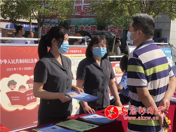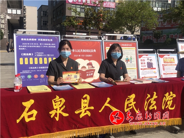 本次活動主題為“典”亮生活 法潤石泉,以增強廣大群眾對《民法典》的認識為目的,推動《民法典》走到群眾身邊,走進群眾生活。通過懸掛橫幅、擺放宣傳展板、發(fā)放宣傳手冊、現(xiàn)場提供法律咨詢等形式向群眾進行普法宣傳。