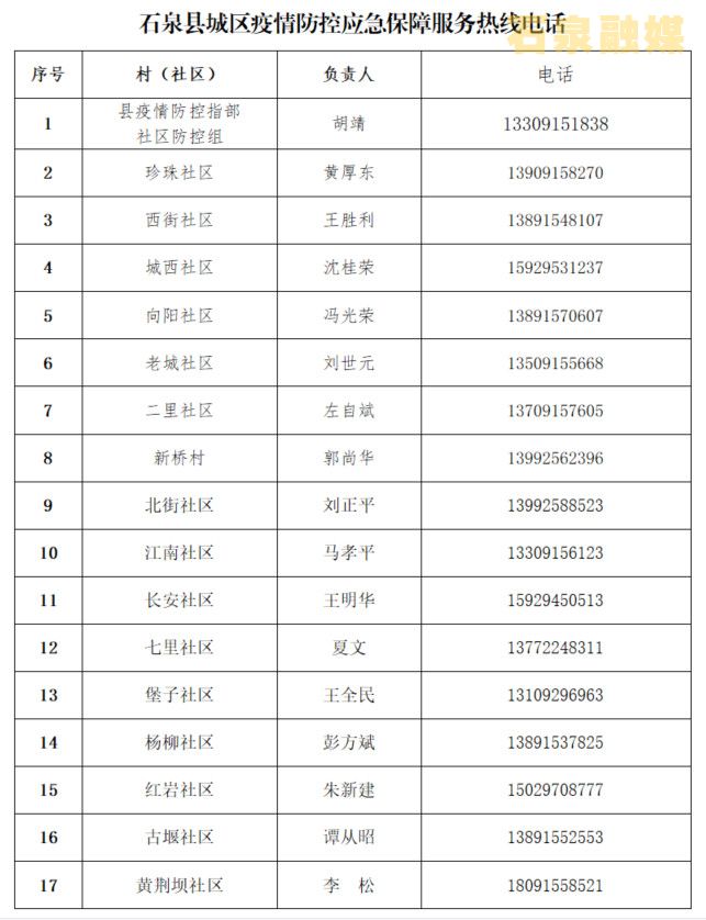 為保障市民生活,滿(mǎn)足群眾生活需求,現(xiàn)公布石泉縣城區(qū)應(yīng)急保障服務(wù)熱線電話,歡迎大家咨詢(xún)反映問(wèn)題,我們將認(rèn)真對(duì)待,快速反應(yīng),抓緊解決,最大限度降低防控期間給您生活帶來(lái)的影響。9yT安康新聞網(wǎng)