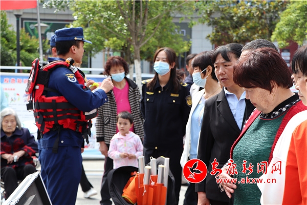 現(xiàn)場群眾通過觀看宣傳視頻和應急科普知識展板、參觀應急救援裝備展示、親身體驗和感受應急救護設施設備等方式認識到防災減災工作的重要性。各單位工作人員向群眾普及洪澇、地震、火災等常見的自然災害等方面的防范措施和自救互救技能,進一步增強全民防災減災意識,提高應急避險、自救互救能力。