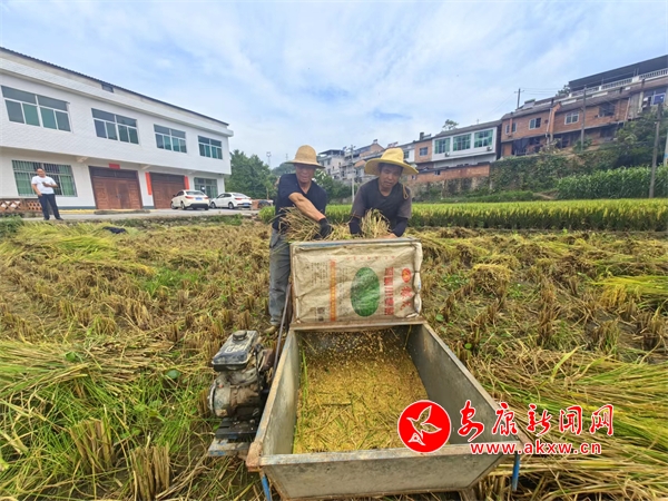 “我們村今年種了水田300畝,預(yù)計(jì)在晴好天氣情況下7天稻谷可全部收割完成,保證顆粒歸倉(cāng)。”良田村黨支部書(shū)記鐘家剛一邊幫著搶收,一邊樂(lè)呵呵地說(shuō)。