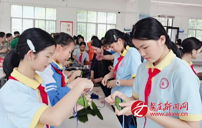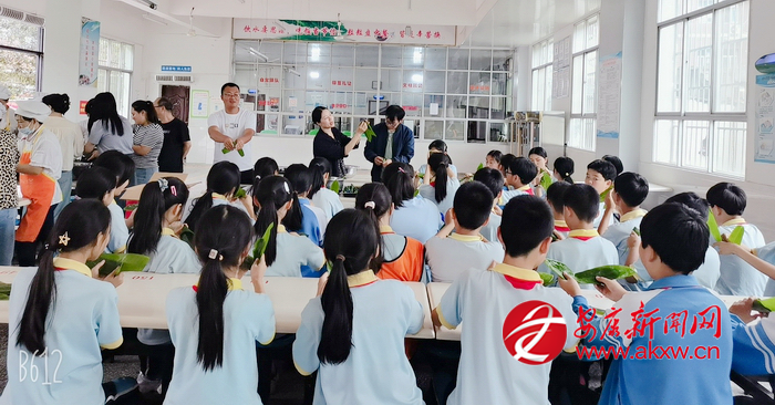 活動(dòng)現(xiàn)場(chǎng),老師與家長(zhǎng)手把手向?qū)W生傳授包粽技巧,從粽葉的折疊角度、糯米的填充分量,到捆扎成形的精細(xì)手法,學(xué)生們圍坐桌前專注練習(xí)。折葉、填米、捆扎……轉(zhuǎn)眼間一個(gè)棱角分明的粽子便成型,現(xiàn)場(chǎng)粽葉翻飛、笑語(yǔ)不斷;顒(dòng)中,老師們還穿插講解端午習(xí)俗,當(dāng)熱氣騰騰的粽子出鍋時(shí),孩子們捧著軟糯香甜的粽子細(xì)細(xì)品嘗,在味蕾的享受中感悟傳統(tǒng)文化的深厚底蘊(yùn)。