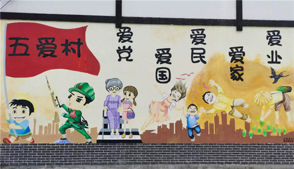 位于五愛(ài)村的一處文化墻。張昊 攝