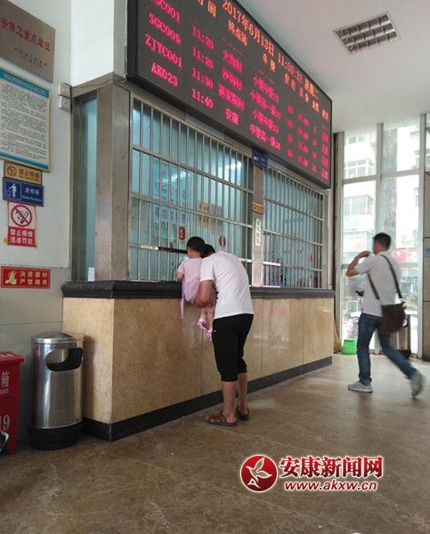 6月13日,旬陽縣汽車站一名家長抱娃咨詢兒童是否符合全票標(biāo)準(zhǔn)。d5t安康新聞網(wǎng)