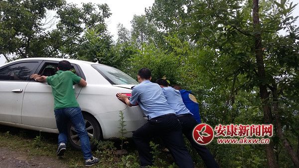 新手司機開車緊張致車掉下路沿 警民合力將車抬起