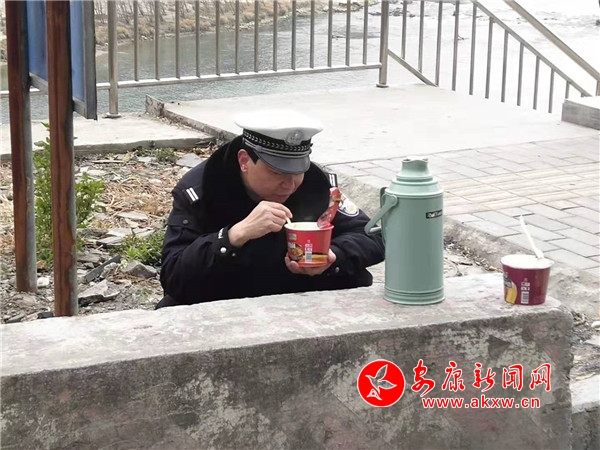 和她一樣的女漢子還有活躍在縣醫(yī)院十字路口處的王金、向婷,站在崗位上一刻她們就要圓滿完成這一刻的任務(wù)。疏導(dǎo)行人和車輛,確?h醫(yī)院應(yīng)急通道的暢通,在她們心里那就是天職,連吃飯也一直在附近移動警務(wù)車里輪流火速解決。