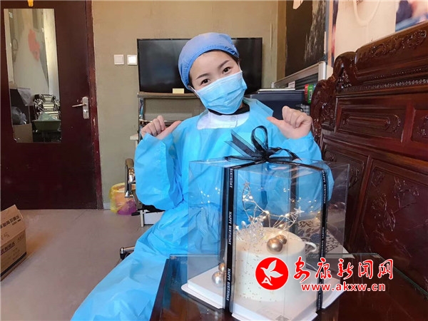 本網(wǎng)訊(通訊員 許欣星)2月16日晚上,旬陽縣城嘉悅酒店集中隔離點護士汪金環(huán)還像往常一樣,做完每日例行的第二次體溫監(jiān)測,準備匯總情況,當推開工作區(qū)辦公室的門,卻被眼前的景象“暖”到了。原來,這天是小汪的24歲生日,她一早就收到了媽媽的祝福和紅包,萬沒想到隔離點的戰(zhàn)友們也為她準備了驚喜。