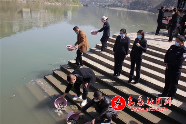 本網(wǎng)訊(通訊員 薛進(jìn)濤)3月19日,旬陽(yáng)縣在漢江碼頭舉行涉魚案件生態(tài)修復(fù)增殖放流暨2020年禁漁宣傳月啟動(dòng)儀式活動(dòng),安康鐵路運(yùn)輸檢察院、市農(nóng)業(yè)執(zhí)法支隊(duì)、市漁業(yè)生產(chǎn)工作站、旬陽(yáng)縣農(nóng)業(yè)農(nóng)村局、旬陽(yáng)縣公安局等單位干部職工共40余人參加活動(dòng)。sjt安康新聞網(wǎng)