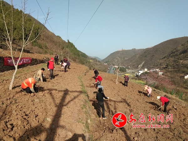 “我們這年齡也大了,出去務(wù)工也難,靠種地收入低,這次剛好社區(qū)連片栽植桃樹(shù),這是個(gè)好機(jī)會(huì),我地出租給社區(qū)集體,我在合作社務(wù)工每天80元工資,見(jiàn)效益后我們還可以分紅。”金河口社區(qū)貧困戶老江手握樹(shù)苗別提有多高興了。