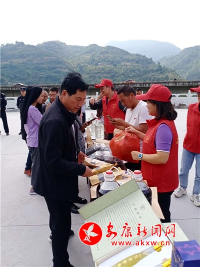 本網(wǎng)訊(通訊員 顏康)30日上午,走進(jìn)段家河鎮(zhèn)金水灣移民小區(qū)廣場(chǎng),映入眼簾的是琳瑯滿目的農(nóng)副產(chǎn)品,獨(dú)具地方特色和風(fēng)味的拐棗醋、櫻桃酒、黑豬肉等土特產(chǎn),引來了眾人的圍觀和采買。