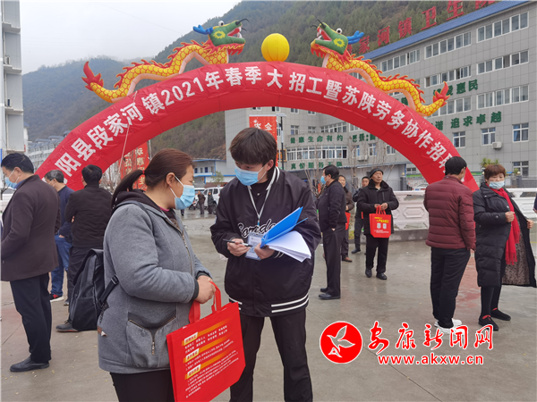 本網(wǎng)訊(通訊員 黃蓉)3月1日上午,在段家河鎮(zhèn)金水灣移民搬遷小區(qū)廣場上,舉辦了2021年春季大招工暨蘇陜勞務(wù)協(xié)作招聘會(huì),吸引了全鎮(zhèn)11個(gè)村(社區(qū))近500余名群眾前來咨詢。