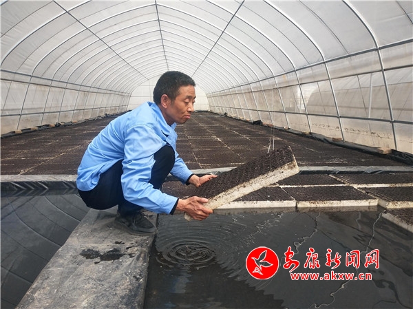 只見電源輕輕合上,自動(dòng)裝盤機(jī)飛快轉(zhuǎn)動(dòng)起來,在工人們和自動(dòng)裝盤機(jī)的共同合作下,拌料、上料、裝盤、播種、裂解、覆土等流水線作業(yè)有條不紊進(jìn)行著。不一會(huì)兒,一個(gè)個(gè)育苗托盤被“請(qǐng)進(jìn)”育苗中棚,整齊有序“漂浮”在水中,靜待生根、發(fā)芽,長(zhǎng)出茁壯煙苗。