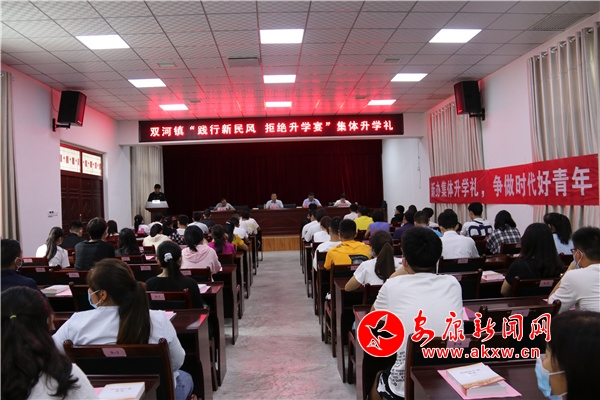 8月27日,在學(xué)子們即將走入大學(xué)校園,進(jìn)入人生新階段前夕,雙河鎮(zhèn)黨委、政府特意精心籌劃了以“踐行新民風(fēng),集體升學(xué)禮”為主題的集體升學(xué)禮儀式,為83名金榜題名的優(yōu)秀學(xué)子及辛勤付出的家長(zhǎng)表示恭賀。