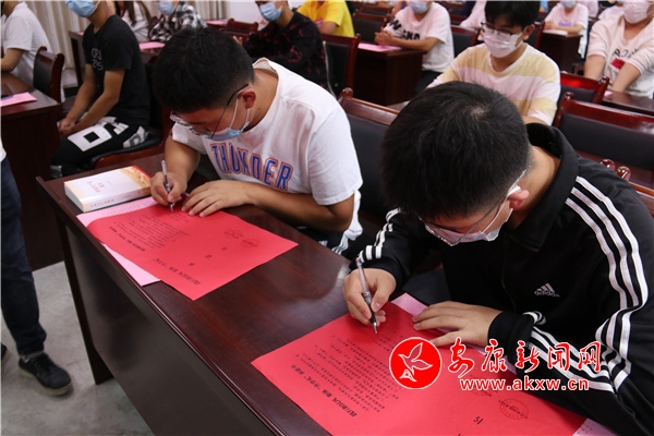 升學(xué)禮上,宣讀了“踐行新民風(fēng),集體升學(xué)禮”倡議書,呼吁各位家長(zhǎng)和學(xué)生積極響應(yīng),以身作則,以實(shí)際行動(dòng)踐行新民風(fēng)。并精心準(zhǔn)備了行李箱、書籍等生活用品。