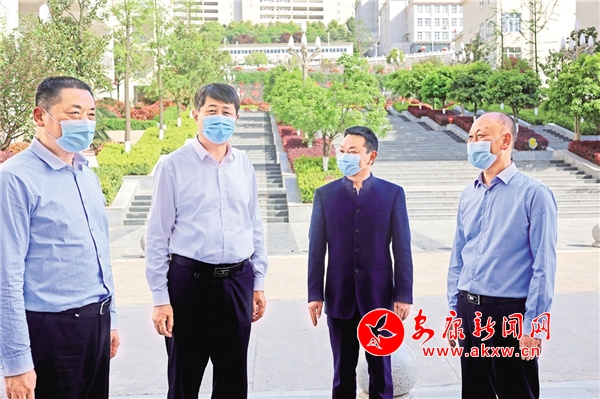 安康市委副書記、政法委書記范永斌(左二),旬陽(yáng)市委書記陳紅星(左一)到旬陽(yáng)市職教中心檢查指導(dǎo)工作。