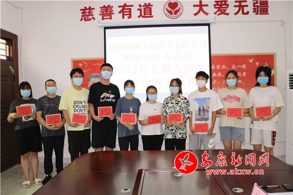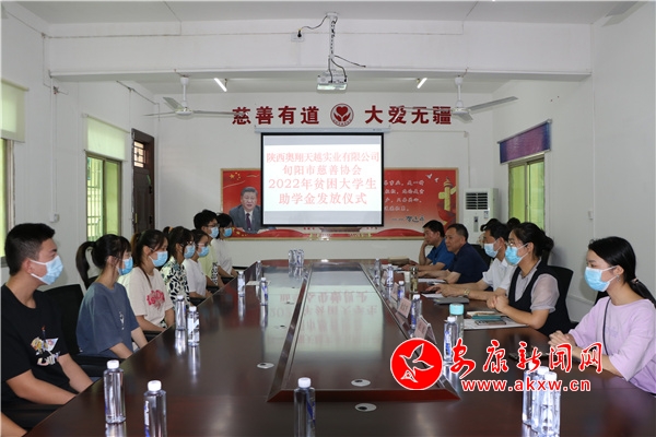 本網(wǎng)訊(通訊員 龔成麗)8月24日,陜西翱翔天越實業(yè)有限公司聯(lián)合旬陽市慈善協(xié)會舉行了2022年貧困大學(xué)生助學(xué)金發(fā)放儀式,F(xiàn)場為13名品學(xué)兼優(yōu)、家庭困難的學(xué)生每人發(fā)放助學(xué)金4000元。