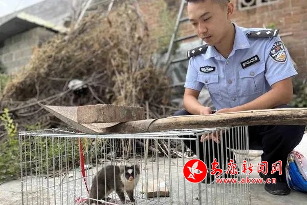 當(dāng)日中午,呂河派出所接到群眾報警稱,“在其家中鐵籠里關(guān)了一只像果子貍的野生動物,請求幫助。”接警后,值班民警迅速帶隊前往處置。到達(dá)現(xiàn)場后,民警看到了這只“不速之客”,是一只灰褐色皮毛的小動物,臉?biāo)坪焖曝i,花白面,時不時上躥下跳,身體狀況還不錯。民警經(jīng)過仔細(xì)比對和觀察,并經(jīng)林業(yè)部門工作人員確認(rèn),發(fā)現(xiàn)該動物并非果子貍,而是一只鼬獾,屬于國家三級保護(hù)動物。