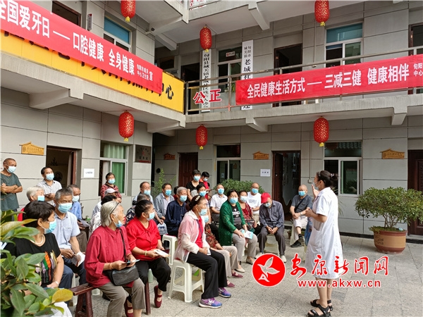 “叔叔,請問您什么時間刷牙,怎么刷的?”城關(guān)中心衛(wèi)生院劉醫(yī)生通過提問的方式走進老人身邊,向老人們宣講健康口腔知識,用通俗易懂的語言教會老人們正確刷牙的方法,鼓勵老人們每半年進行口腔檢查一次,如有口腔問題要及時發(fā)現(xiàn)、及時治療,使口腔無氣味,生活有滋味,健康有品味。