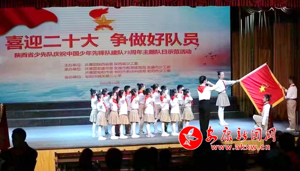 本網(wǎng)訊(通訊員 龔成麗)10月13日,陜西省慶祝中國少年先鋒隊建隊73周年暨“喜迎二十大 爭做好隊員”主題隊日活動在旬陽市城關(guān)第三小學(xué)舉辦。安康市各縣(區(qū))團(tuán)委少先隊總輔導(dǎo)員以及受表彰的集體和個人代表參加活動。