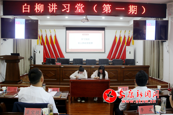 “青”戰(zhàn)擂臺,增“智”促“干”。知識競賽以接龍問答和雙人對戰(zhàn)的形式開展。雙人對戰(zhàn)環(huán)節(jié)依托“學(xué)習(xí)強(qiáng)國”學(xué)習(xí)平臺,對戰(zhàn)人員個(gè)個(gè)精神飽滿、沉著冷靜,10名參賽人員以扎實(shí)的知識儲備和機(jī)智精彩的應(yīng)答使得比分不分伯仲。接龍問答環(huán)節(jié),聚焦省委“三個(gè)年”活動、旬陽市“3456”工作部署、“一強(qiáng)五好”等內(nèi)容展開,現(xiàn)場隨機(jī)抽號提問,抽中者快速反應(yīng)、準(zhǔn)確回答,緊張、刺激瞬間將活動氛圍推向了高潮。