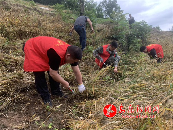 金河口社區(qū)組織鎮(zhèn)村干部搶收小麥