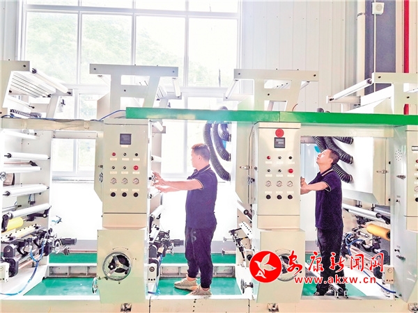 6月27日,在旬陽市生物基可降解材料產(chǎn)業(yè)園,技術(shù)人員在安裝調(diào)試水墨印刷機(jī)。鄒一銘 攝