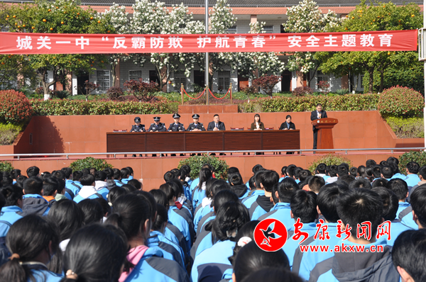 本網(wǎng)訊(通訊員 李錦榕)為進(jìn)一步扎實做好護(hù)校安園工作,全面增強(qiáng)師生的法制意識和安全防范能力,預(yù)防校園欺凌、霸凌事件,構(gòu)建平安和諧校園。3月20日,城關(guān)派出所深入旬陽市城關(guān)第一初級中學(xué)開展“反霸防欺 護(hù)航青春”安全主題教育暨安全委員、小組長授章活動。