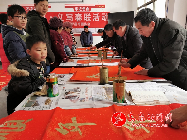 1月13日,鎮(zhèn)坪縣上竹鎮(zhèn)組織開展義寫春聯(lián)活動,為廣大群眾免費贈送春聯(lián)。活動現(xiàn)場熱鬧非凡,處處洋溢著濃濃的年味,書法家們揮毫潑墨,熱情地為群眾書寫著一副副春聯(lián),群眾們滿心歡喜的接過這些書法作品,臉上的笑容不自覺地流露出來。這些滿載著祝福的春聯(lián),帶著揮別豬年,喜迎鼠年,辭舊迎新的美好祝愿,為即將來臨的春節(jié)增添了濃濃的節(jié)日氣氛。 (通訊員 黃俊 文/圖)zEM安康新聞網(wǎng)