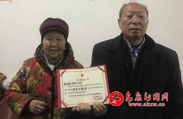 今年的疫情發(fā)生以來,他時(shí)時(shí)刻刻都在關(guān)注關(guān)心湖北的疫情,他吩咐子女們都堅(jiān)守各自的工作崗位,不要操心他們,也不要回家去,他自己照顧體弱生病的老伴。今天一大早,他就拉著因腰椎手術(shù)后行動不靈便的老伴去政府大樓找到紅十字會辦公室,主動要求捐款,他說雖然沒有多少,但卻是兩位老人支持疫情防控的一點(diǎn)心意。