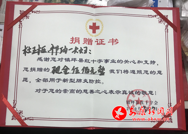 本網(wǎng)訊(通訊員 韋慰)今年以來,新型冠狀病毒感染的肺炎疫情牽動著每一個(gè)人的心,3月18日,家住鎮(zhèn)坪縣城關(guān)鎮(zhèn)上新街竹溪河社區(qū)的88歲退休老干部杜正樞慎重地將500元現(xiàn)金交給鎮(zhèn)坪縣紅十字會工作人員,并囑咐其要把錢用于支持疫情防控,為疫情防控獻(xiàn)一份力。