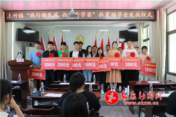 在升學(xué)禮上,宣讀了《上竹鎮(zhèn)2020年度“踐行新民風(fēng)•不辦升學(xué)宴”教育扶貧助學(xué)活動實施方案》,按照一本2000元,二本1500元的標(biāo)準(zhǔn)為18學(xué)生發(fā)放了扶貧助學(xué)金,共計30500元。學(xué)生代表印想想發(fā)言,她表示,堅決向“升學(xué)宴”“謝師宴”說不,自己會更加努力學(xué)習(xí),不負(fù)眾望,知恩感恩,做文明新風(fēng)的倡導(dǎo)者。學(xué)生家長代表陳昌瓊在儀式上發(fā)言,將一如既往地弘揚(yáng)新民風(fēng),自覺抵制大操大辦、鋪張浪費(fèi),做移風(fēng)易俗的踐行者。在活動現(xiàn)場,學(xué)生家長也倍感自豪,臉上洋溢著幸福的笑容,紛紛表示,黨委政府通過開展新穎的慶祝活動,給孩子們留下珍貴的記憶,既達(dá)到了革除陋習(xí)的目的,讓“里子”好,又讓百姓“面子”亮。