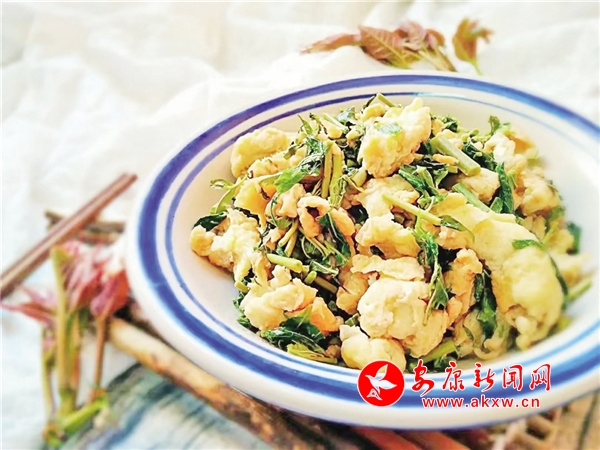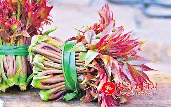 香椿 春天必吃的一道時(shí)令菜。香椿又叫做椿芽、春尖葉,香椿初發(fā)芽長(zhǎng)葉的時(shí)候,掐香椿頭拿來(lái)做成香椿炒雞蛋吃,吃在嘴里脆嫩新鮮,味美爽口,齒頰俱芬。鎮(zhèn)坪的香椿響當(dāng)當(dāng)?shù)那嗄塾形,紅得發(fā)紫的葉芽,閃著點(diǎn)兒油光,看起來(lái)就很好吃。