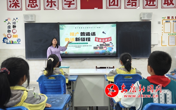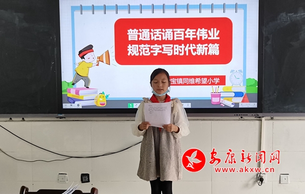 在課間,學校師生以具體形象、通俗易懂的語言,詮釋了自己對普通話和規(guī)范簡化字的認識。在主題班會上,各班借助PPT、宣教片等形式向?qū)W生科普了普通話的由來、普通話水平等級、不規(guī)范簡化字、《通用語言文字法》的解讀、文學名著中的偏僻字音等知識,號召大家“講普通話,寫規(guī)范字”,積極主動地弘揚民族語言文化。