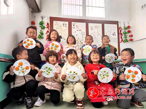 孩子們把柿子帶回班級(jí),親手制作柿餅,把柿子洗一洗,柿皮削一削,棉繩繞一繞,一串串的柿子掛在樹(shù)梢上,期待著盡快吃到甜甜的柿餅。孩子們還用畫(huà)筆畫(huà)出了心中的“柿”界,深刻感受到了秋天的美好和豐收的喜悅。他們還給作品取了很多美好寓意的名字:幸福滿袋、“柿柿”如意、萬(wàn)“柿”勝意、“柿全柿美”等。