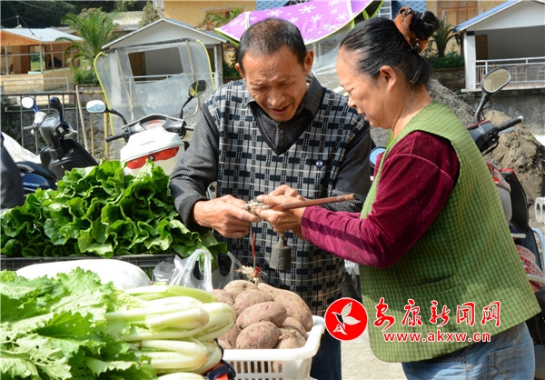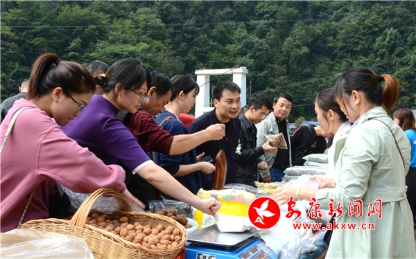 本網(wǎng)訊(通訊員 姚秋晨 黃志順) “給我稱10斤核桃,5斤干洋芋果果。”“土雞來(lái)兩只。”“買2個(gè)艾草枕頭。你這艾草足浴包咋賣的呢?”“雙節(jié)”前夕,紫陽(yáng)縣毛壩鎮(zhèn)觀音村的集市熱鬧非凡。從來(lái)都是觀音村的群眾逢三六九到鎮(zhèn)上趕集,如今鎮(zhèn)上、縣上、市上的人都到村里買東西來(lái)了。