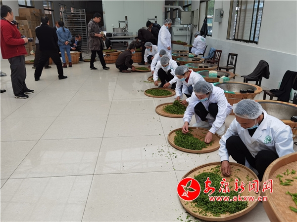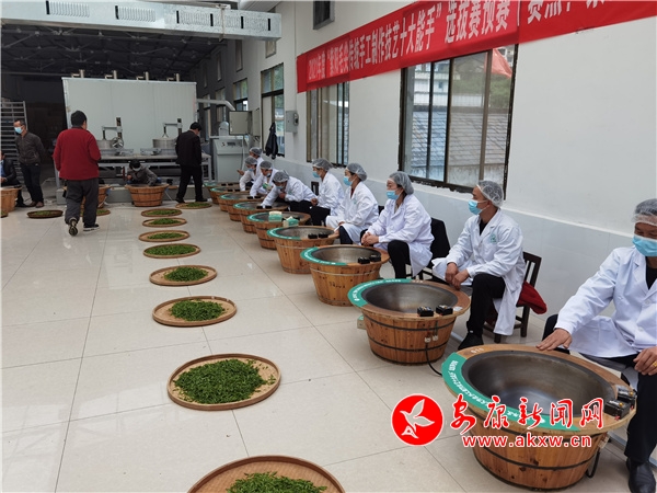 本網訊(通訊員 劉成軍)四月紫陽茶飄香,手工制茶競技忙。 4月7日,由紫陽縣總工會、紫陽縣農業(yè)農村局局、紫陽縣人力資源和社會保障局等單位聯合舉辦的2021年“紫陽毛尖傳統(tǒng)手工制作技藝十大能手”選拔賽預賽分賽場在高橋鎮(zhèn)關南春茶廠舉行。來自全鎮(zhèn)30多名手工制作技術能手紛紛同場競技,展現傳統(tǒng)手工制茶魅力。