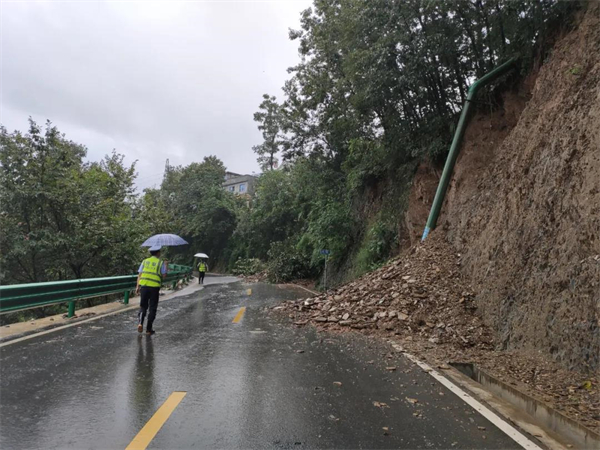 轄區(qū)S310省道有部分路段出現(xiàn)塌方、落石。51KM—53KM處有團霧;蒿漢路目前部分路段有垮方、落石,轄區(qū)其他各條道路均有積水、垮塌、泥石流造成通行受阻。