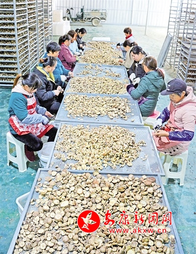 搬遷群眾在選檢烘干的香菇產(chǎn)品