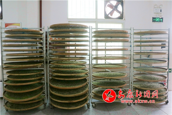 與此同時,洄水鎮(zhèn)境內(nèi)的數(shù)十家茶企(廠)也在加班加點趕制明前茶。在科宏茶業(yè)有限公司生產(chǎn)車間,制茶師傅有條不紊地操作著專業(yè)化設(shè)備,按照殺青、揉捻、烘焙等流程制作新茶,濃郁的茶香彌漫整個車間。殺青機、揉捻機、烘干機等機械代替了傳統(tǒng)手工,生產(chǎn)效率更高,茶葉品質(zhì)也更加穩(wěn)定。