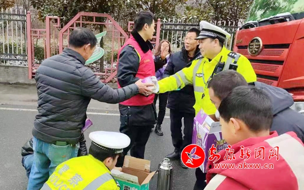 2月20日晚,紫陽(yáng)縣又迎來(lái)了一次降雪天氣,氣溫驟降,轄區(qū)路面迅速積雪結(jié)冰。為最大限度預(yù)防和減少交通事故發(fā)生,確保群眾出行安全和道路平安暢通,紫陽(yáng)縣公安局交警大隊(duì)統(tǒng)一指揮部署,迅速安排所有警力上路開展交通巡查,加大路面管控力度,強(qiáng)化指揮疏導(dǎo),確保轄區(qū)道路交通秩序的安全、有序、暢通。2月21日11時(shí)許,因滯留車輛較多,交警大隊(duì)聯(lián)合高速收費(fèi)站工作人員向滯留附近的司乘人員“送來(lái)熱水、泡面”讓各位駕乘人員感受到紫陽(yáng)交警的濃濃暖意,舒緩駕乘人員旅途滯留的焦慮情緒,同時(shí)提醒駕駛?cè)思皶r(shí)關(guān)注天氣情況和路況信息,確保行車安全。