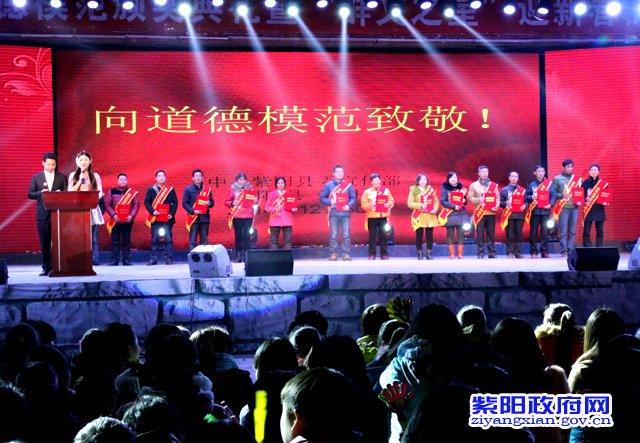 12月30日晚,由紫陽縣委宣傳部、紫陽縣文明辦主辦,縣文廣局、縣民歌文化傳播公司等單位協(xié)辦的首屆紫陽縣道德模范頒獎典禮在縣體育場隆重舉行?h人大常委會主任……