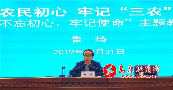 本網(wǎng)訊 10月31日上午,副市長(zhǎng)魯琦緊扣“不忘初心、牢記使命”主題教育,以“不忘農(nóng)民初心、牢記‘三農(nóng)’使命”為題,給分管部門黨員干部講黨課。市農(nóng)業(yè)農(nóng)村局、市水利局、市林業(yè)局、市民政局、市富硒辦、市供銷社、市殘聯(lián)等農(nóng)口部門黨員干部及市政府辦部分黨員干部參加。
