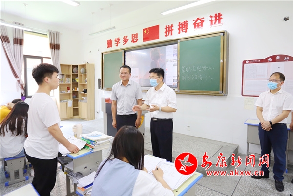 在漢濱高中, 寇全安一行先后檢查了入校檢測點、防疫物資儲備、監(jiān)控平臺運行等,了解考點參考人數(shù)、考場布置,以及食品安全、試卷保密等備考保障措施落實情況,叮囑要壓實各方責(zé)任,加強統(tǒng)籌配合,為廣大考生營造安全安靜、舒適舒心的考試環(huán)境。在江北高中和漢陰縣第二中學(xué),他走進(jìn)教室和高考學(xué)子交談,勉勵他們保持良好心態(tài),從容備考應(yīng)考,并祝?忌〉脙(yōu)異成績;還著重了解了學(xué)校心理咨詢室運行情況,并就如何開展心理健康教育和預(yù)防校園暴力與校長、部分教師進(jìn)行了交流探討。