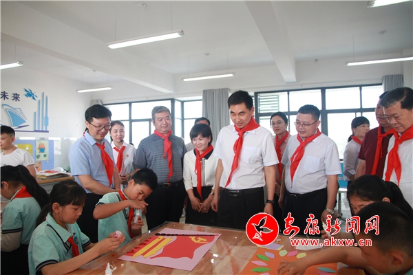 黃戈來(lái)到漢濱初中濱江校區(qū)看望慰問(wèn)少年兒童,親切詢(xún)問(wèn)了解孩子們學(xué)習(xí)生活情況,同大家一起做手工,共讀一本書(shū),參加少先隊(duì)入隊(duì)儀式,為新隊(duì)員們親手系上紅領(lǐng)巾,并送上節(jié)日祝福和美好期望。寄語(yǔ)孩子們要牢記習(xí)近平總書(shū)記來(lái)陜考察時(shí)對(duì)大家提出的“文明其精神、野蠻其體魄”殷切囑托,努力鍛煉身體,刻苦學(xué)習(xí)知識(shí),打好基礎(chǔ),報(bào)效祖國(guó)。叮囑有關(guān)部門(mén)要努力為少年兒童營(yíng)造健康、快樂(lè)、安全的學(xué)習(xí)生活環(huán)境,讓他們茁壯成長(zhǎng)、全面發(fā)展。