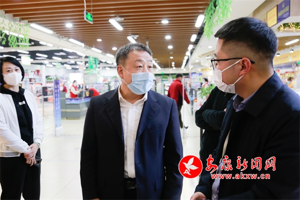 在天一城市廣場,武文罡實地查看疫情防控常態(tài)化措施落實情況,要求各類市場經(jīng)營主體必須堅決克服麻痹思想,從嚴落實重點場所“測溫、驗碼、戴口罩、一米距、常消毒”常態(tài)化疫情防控措施,全力消除各類風(fēng)險隱患。同時強調(diào)各級要加強物資調(diào)運,備足生活物品,穩(wěn)定市場價格,確保滿足群眾生產(chǎn)生活需求。