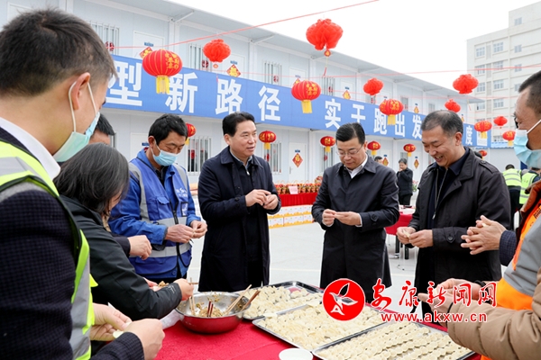 在陜建十二建高新區(qū)路網(wǎng)項(xiàng)目工地,趙俊民一行親切看望響應(yīng)號(hào)召留守安康、就地過(guò)年的施工人員,并同大家一起包餃子、吃團(tuán)年飯,共同分享迎新納福的喜悅。趙俊民勉勵(lì)大家,無(wú)論來(lái)自何方、家在何處,都是推動(dòng)發(fā)展的建設(shè)者、參與者、見(jiàn)證者,希望大家在安康舒心過(guò)節(jié)、安心工作。各級(jí)各部門(mén)要強(qiáng)化政策落實(shí)和保障措施,為就地過(guò)年人員提供良好的工作和生活環(huán)境,讓他們以安康為家,歡歡喜喜地過(guò)個(gè)幸福年。