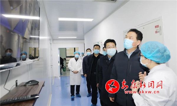 在市中心醫(yī)院北院區(qū),趙俊民實地查看市核酸檢測基地核酸采集、檢測等工作。他強調,要不斷提高核酸檢測能力和效率,合理擴大檢測范圍,做到重點人群“應檢盡檢”、重點行業(yè)“適時抽檢”、一般人群“愿檢盡檢”。要強化醫(yī)院入口的管控,發(fā)熱門診、消毒隔離以及人員排查、陪護等的管理工作,防止院內感染事件發(fā)生。