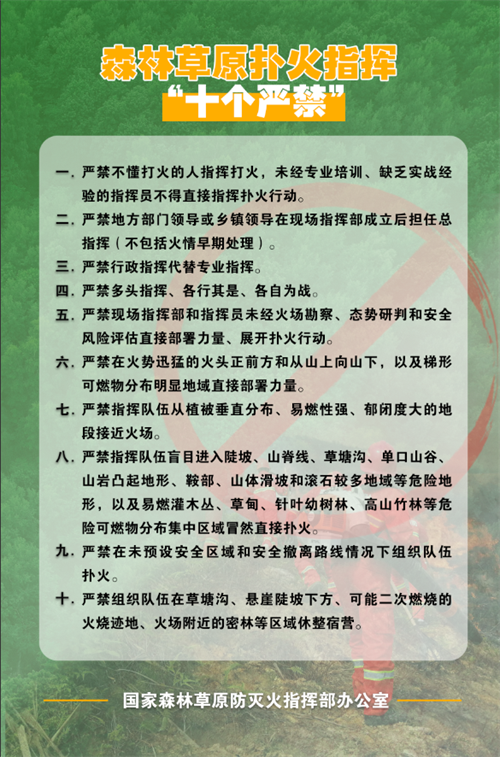 森林草原撲火指揮“十個嚴禁”