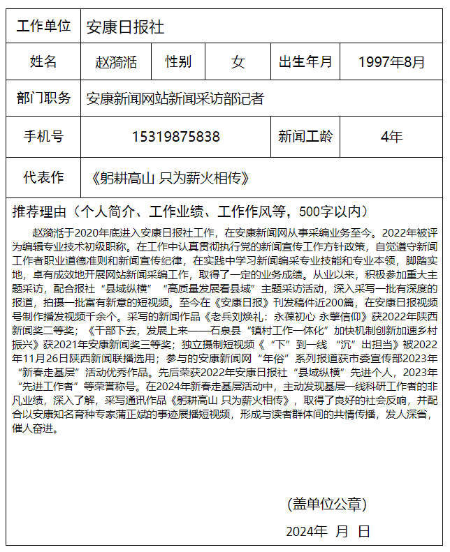 2024年“新春走基層”活動推薦個人登記表nZd安康新聞網(wǎng)