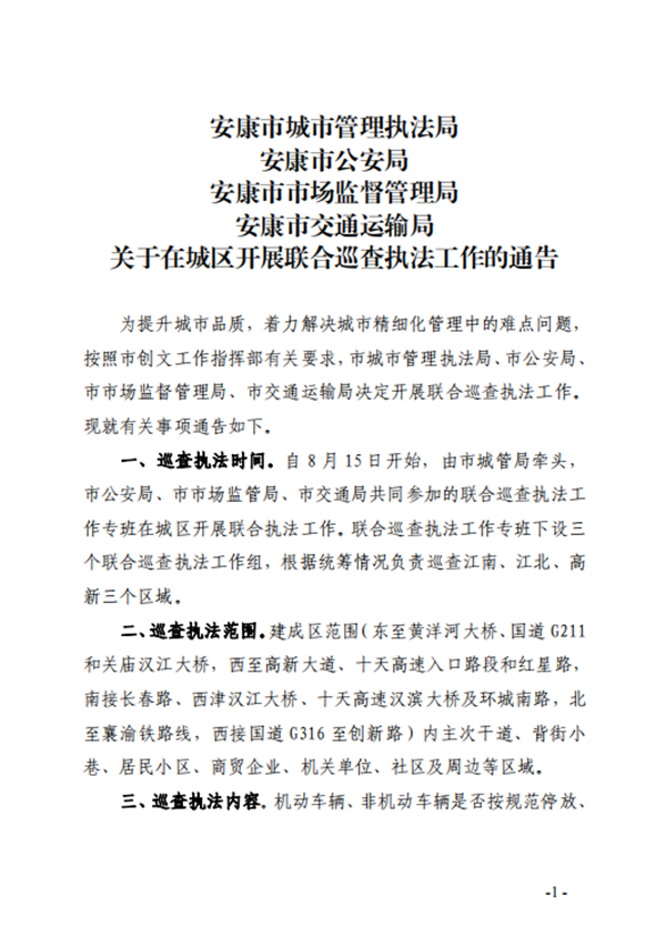 我市發(fā)布通告:在城區(qū)開(kāi)展聯(lián)合巡查執(zhí)法工作