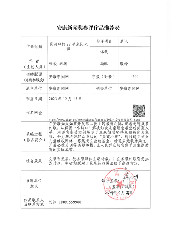 經(jīng)過編委會推薦、社黨委研究決定,擬推薦以下13件新聞作品參評2023年度“安康新聞獎”。公示時間從2024年3月25日至2024年3月29日,公示期為5個工作日。如有不同意見,請向安康日報社機關(guān)紀委、新聞管理部反映。nyB安康新聞網(wǎng)
